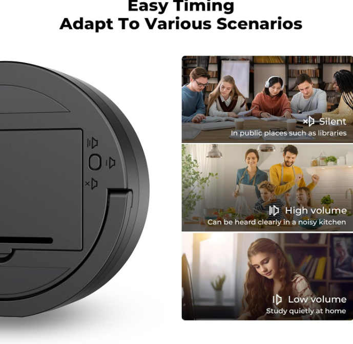 🔊 Loud & Adjustable Alarm – Powerful alert system with volume control guarantees you’ll never miss an alarm, even in a noisy kitchen or classroom.